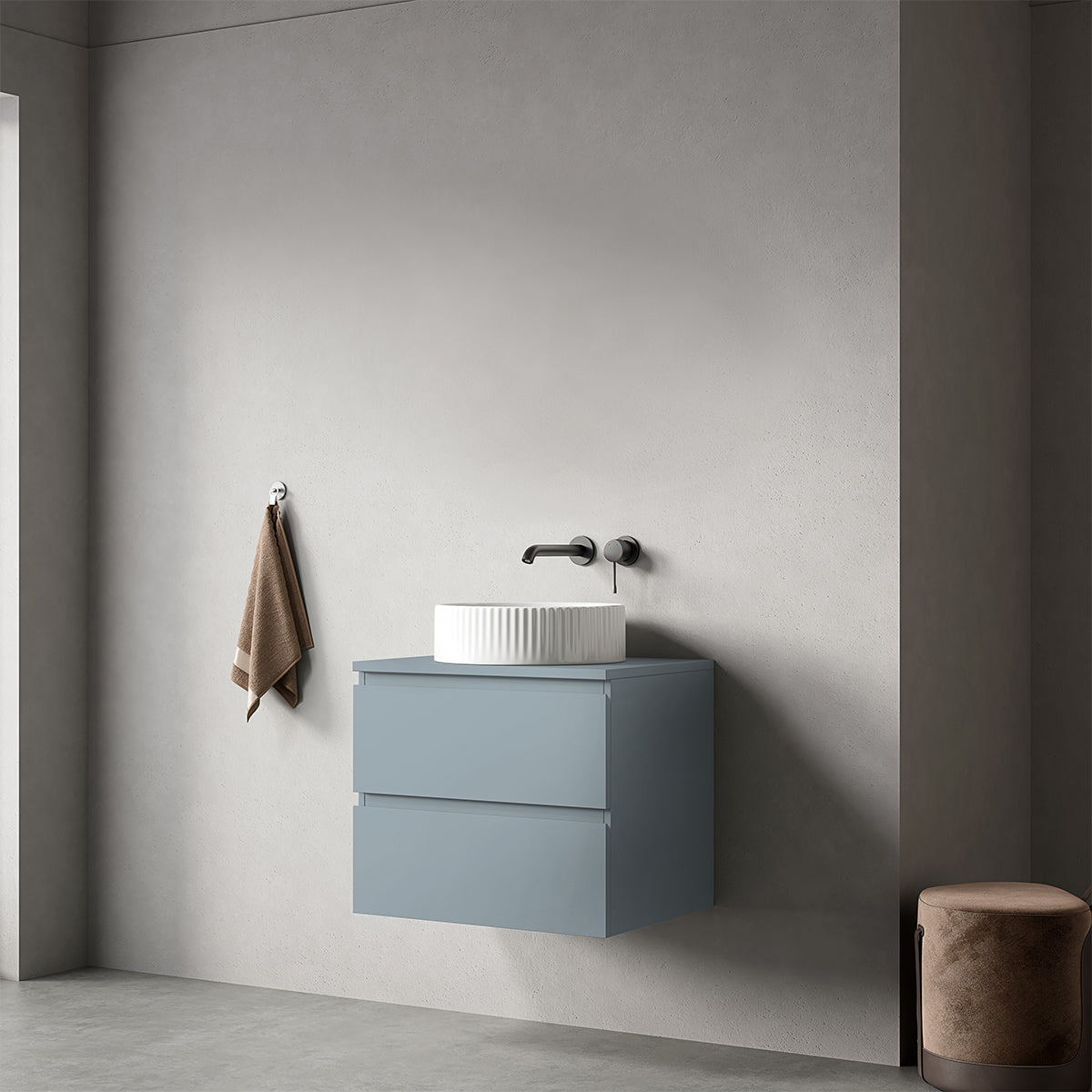 Mobile bagno sospeso 60 cm Blu Avio per Lavabo d'appoggio Senza Specchio - Fiji Paint Top