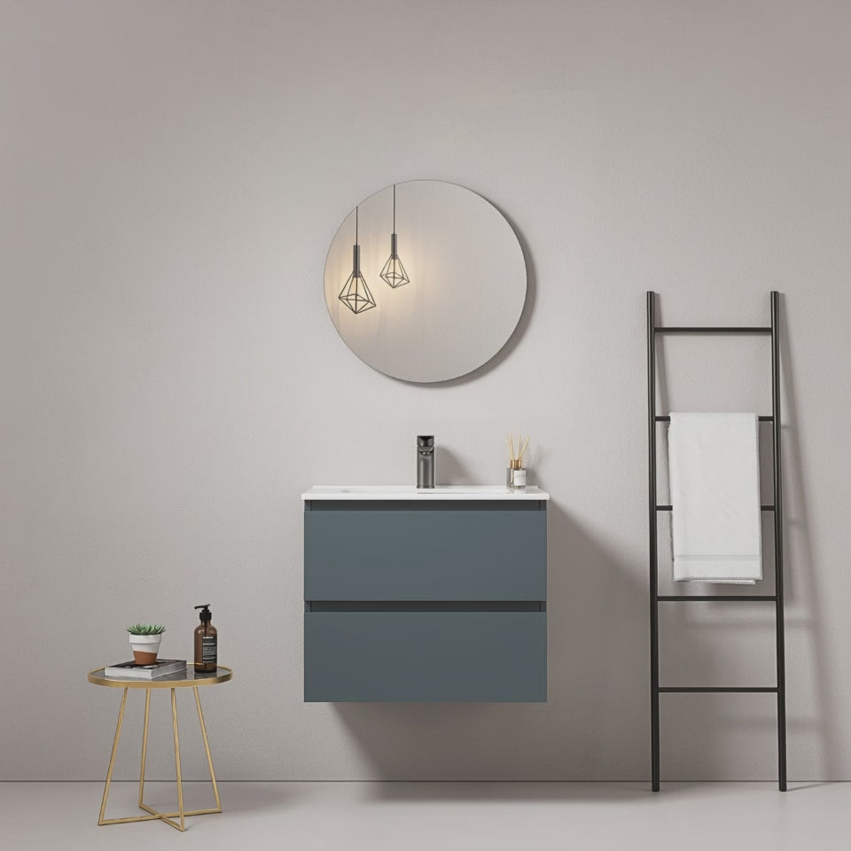 Mobile bagno sospeso 60 cm Blu Mare Lavabo in Ceramica Specchio Tondo - Fiji Paint