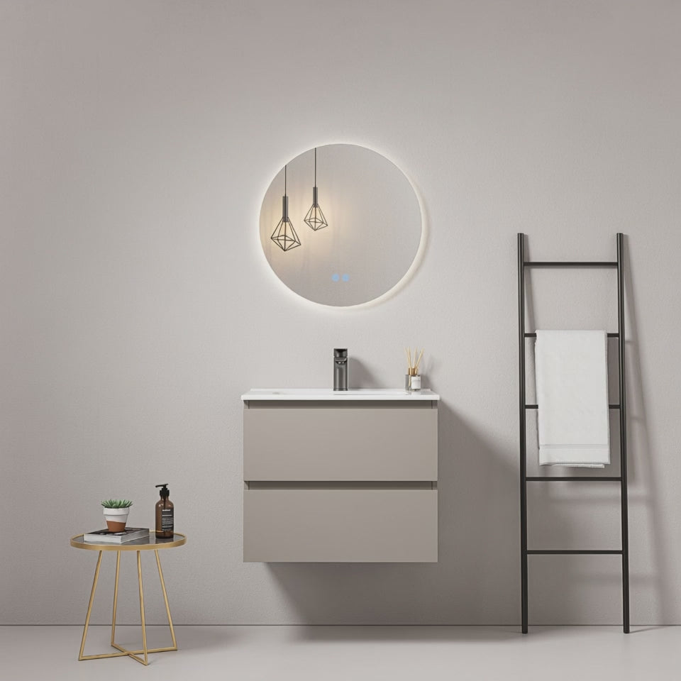 Mobile bagno sospeso 60 cm Grigio Cenere Lavabo in Ceramica Specchio Tondo Retroilluminato - Fiji Paint