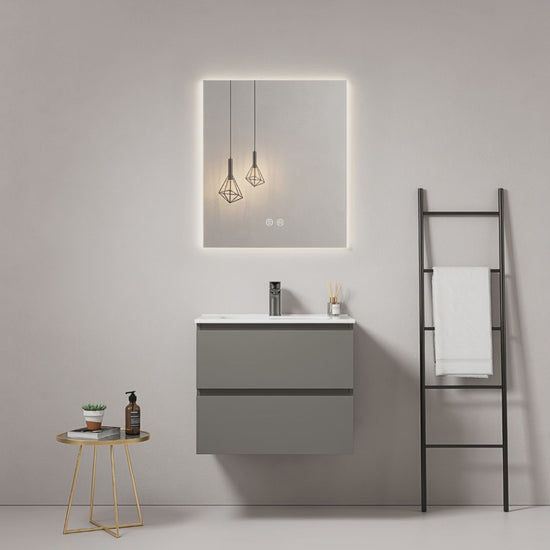 Mobile bagno sospeso 60 cm Grigio Londra Lavabo in Ceramica Specchio Quadro Retroilluminato - Fiji Paint