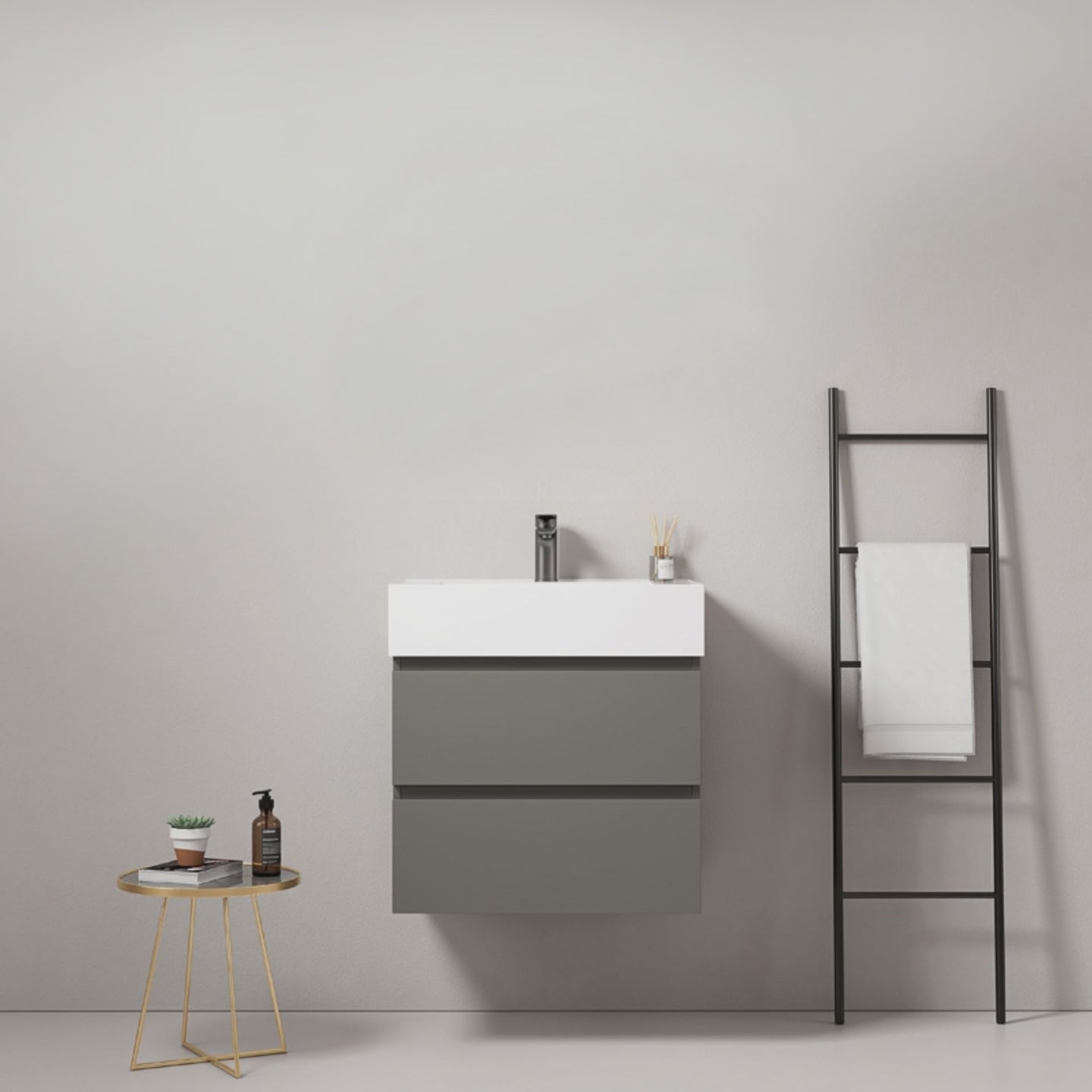 Mobile bagno sospeso 60 cm Grigio Londra Lavabo in Resina Senza Specchio - Fiji Paint