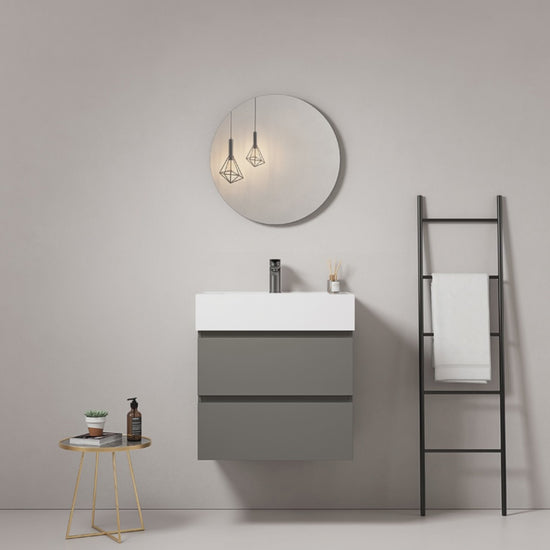 Mobile bagno sospeso 60 cm Grigio Londra Lavabo in Resina Specchio Tondo - Fiji Paint