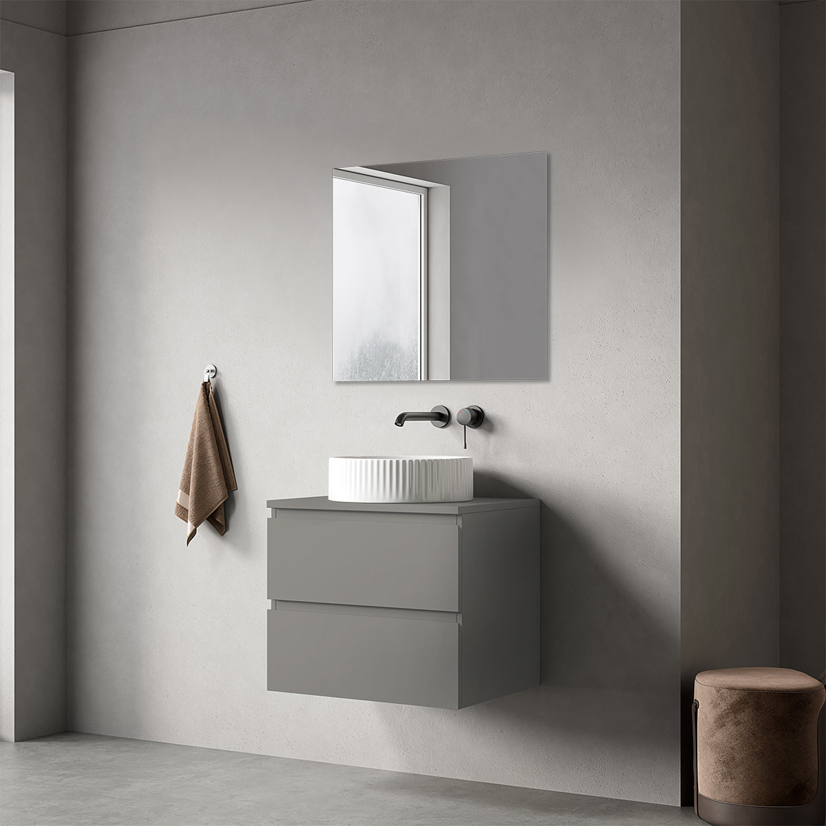 Mobile bagno sospeso 60 cm Grigio Londra per Lavabo d'appoggio Specchio Quadro - Fiji Paint Top