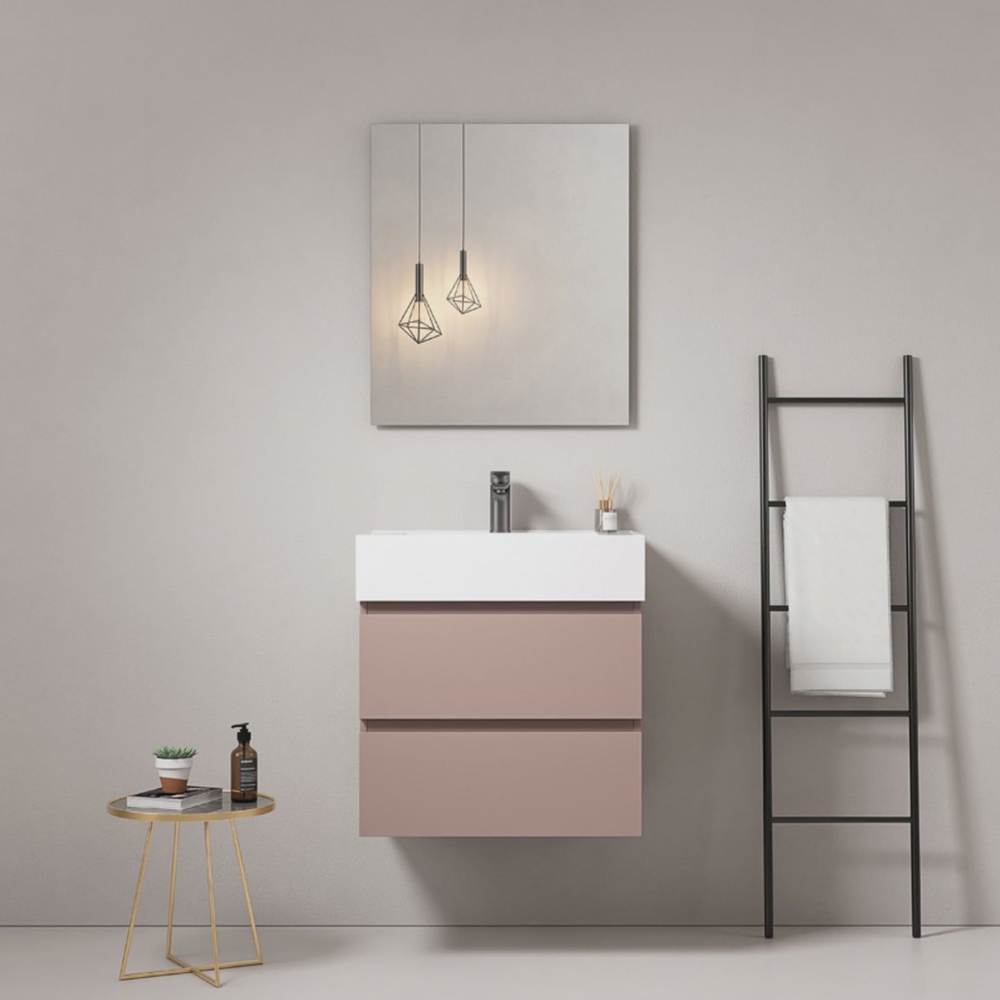 Mobile bagno sospeso 60 cm Rosa Retro Lavabo in Resina Specchio Quadro - Fiji Paint