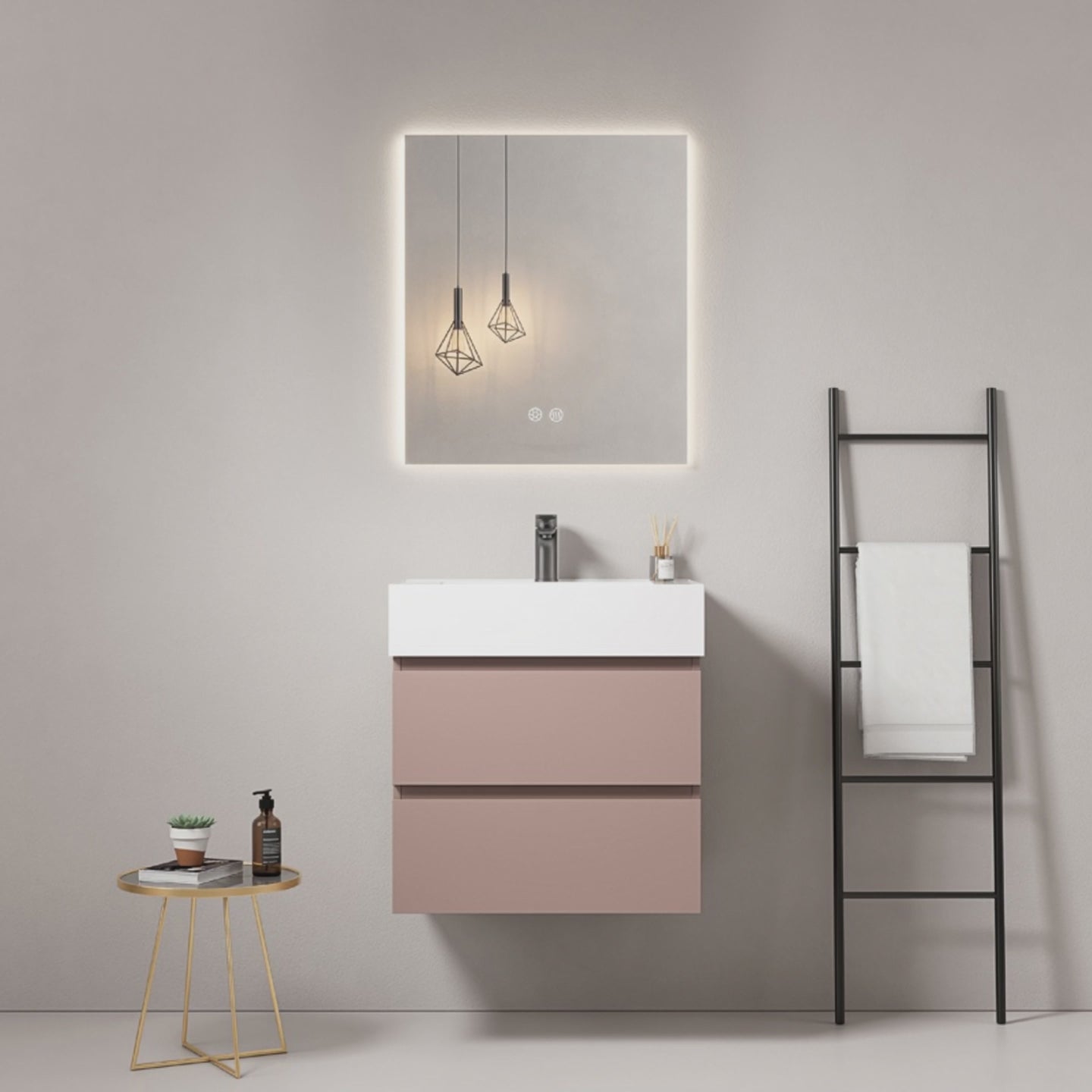 Mobile bagno sospeso 60 cm Rosa Retro Lavabo in Resina Specchio Quadro Retroilluminato - Fiji Paint