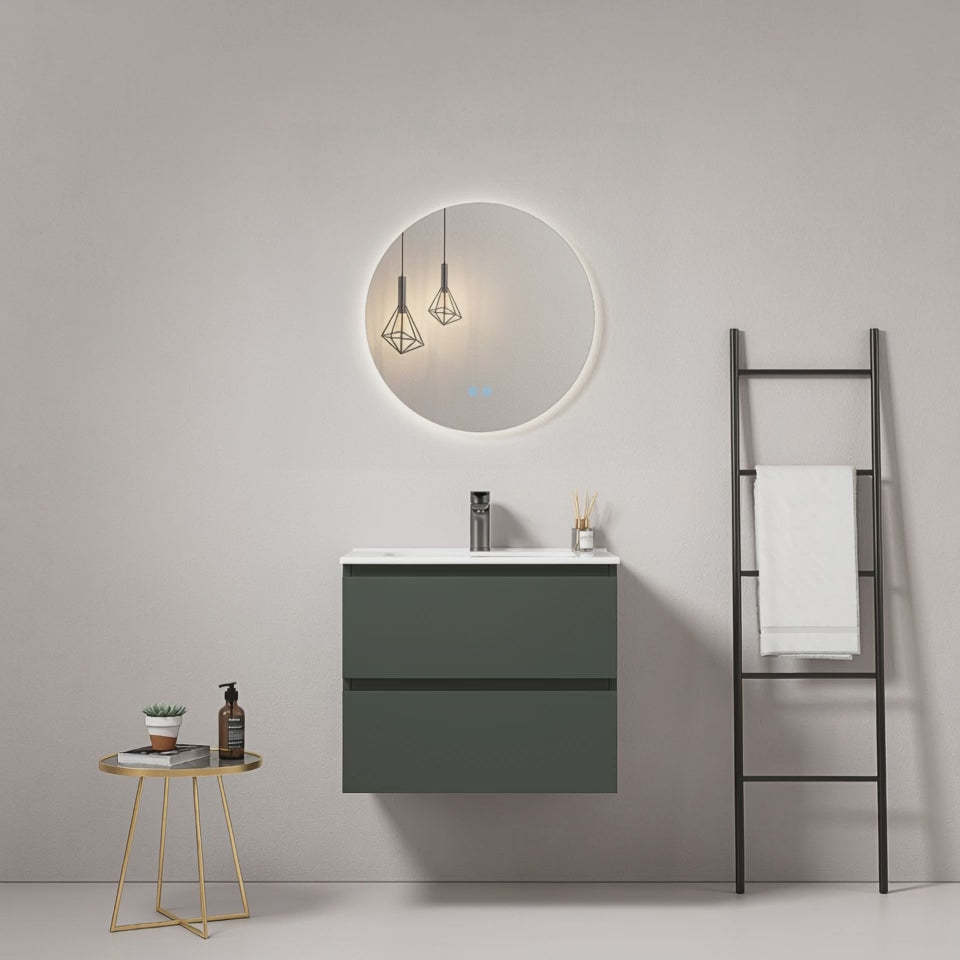 Mobile bagno sospeso 60 cm Verde Comodoro Lavabo in Ceramica Specchio Tondo Retroilluminato - Fiji Paint