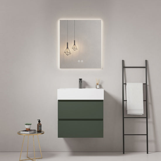 Mobile bagno sospeso 60 cm Verde Comodoro Lavabo in Resina Specchio Quadro Retroilluminato - Fiji Paint