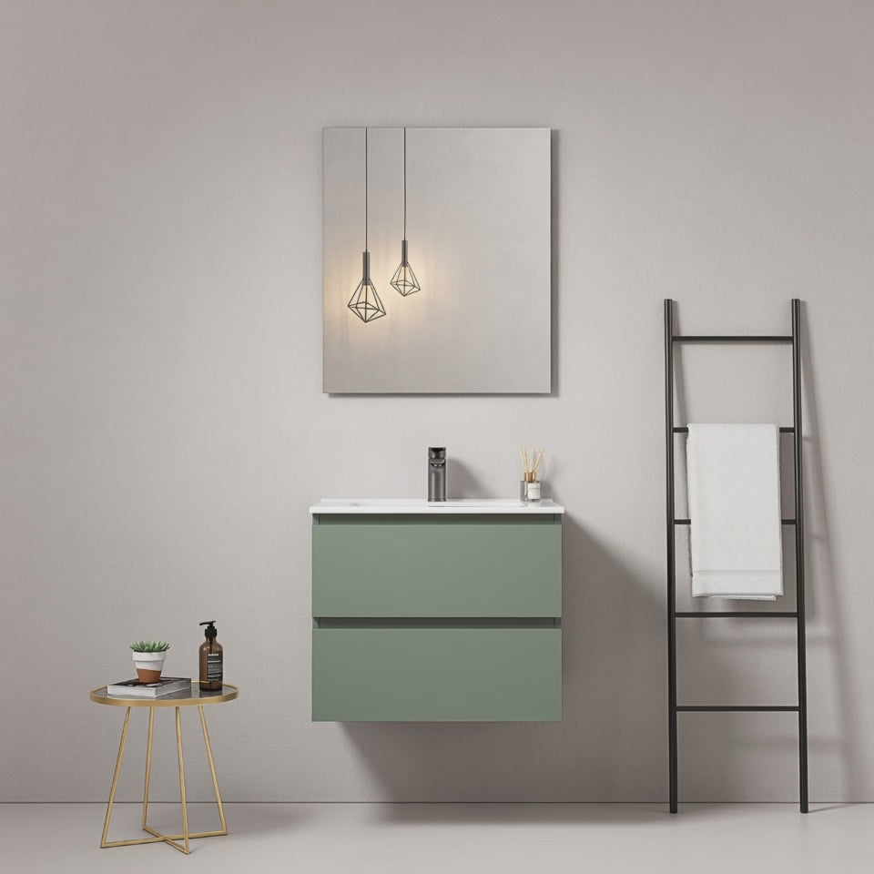 Mobile bagno sospeso 60 cm Verde Salvia Lavabo in Ceramica Specchio Quadro - Fiji Paint