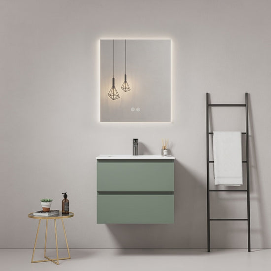 Mobile bagno sospeso 60 cm Verde Salvia Lavabo in Ceramica Specchio Quadro Retroilluminato - Fiji Paint