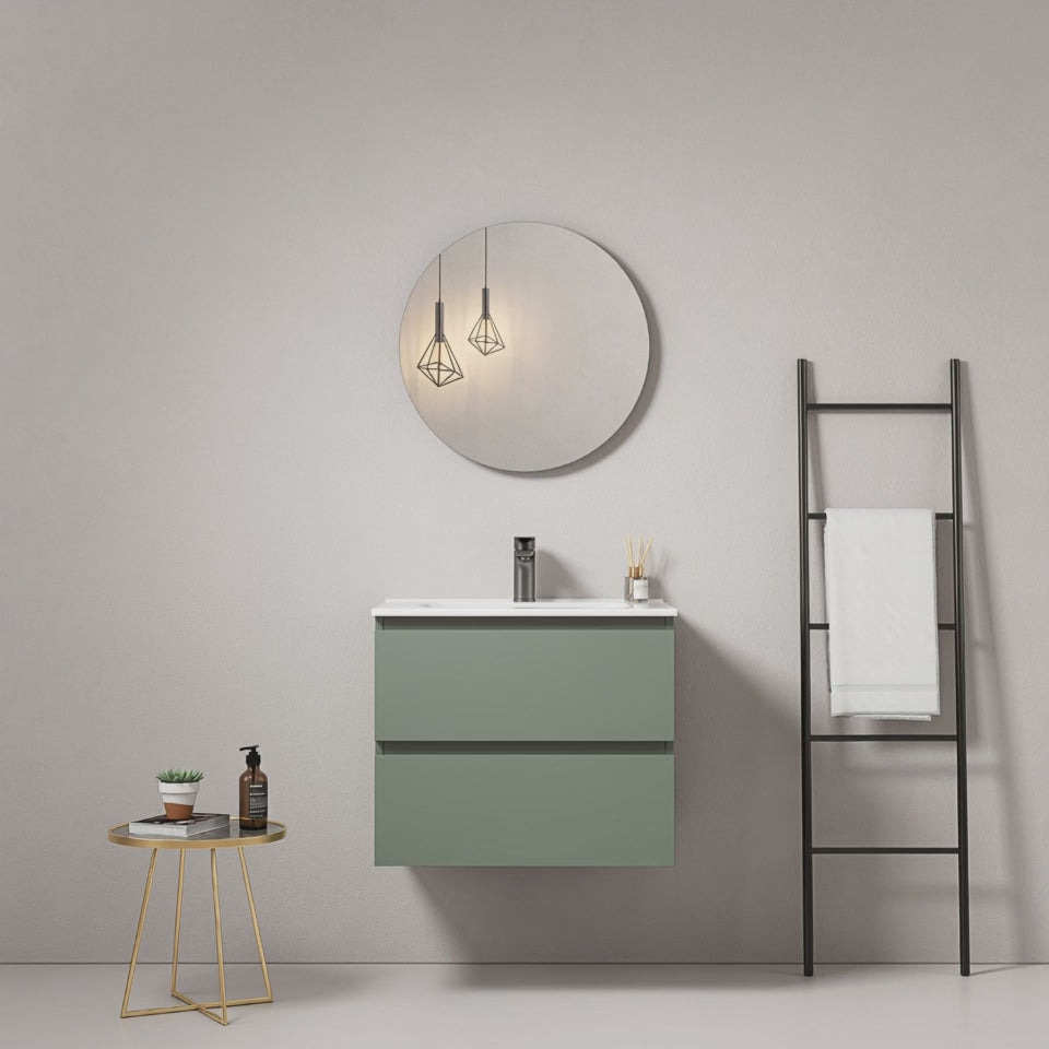 Mobile bagno sospeso 60 cm Verde Salvia Lavabo in Ceramica Specchio Tondo - Fiji Paint