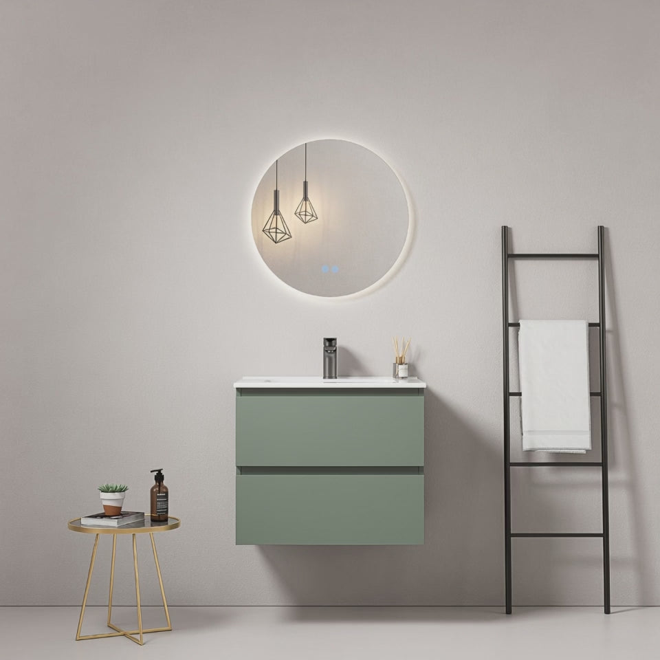 Mobile bagno sospeso 60 cm Verde Salvia Lavabo in Ceramica Specchio Tondo Retroilluminato - Fiji Paint
