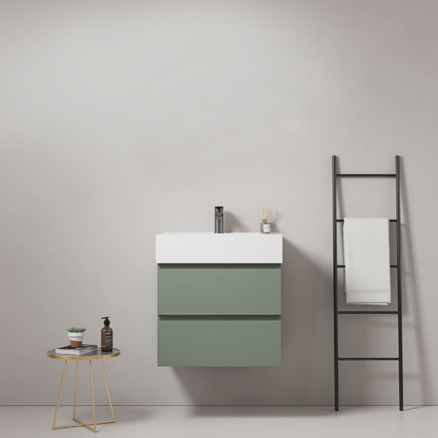 Mobile bagno sospeso 60 cm Verde Salvia Lavabo in Resina Senza Specchio - Fiji Paint