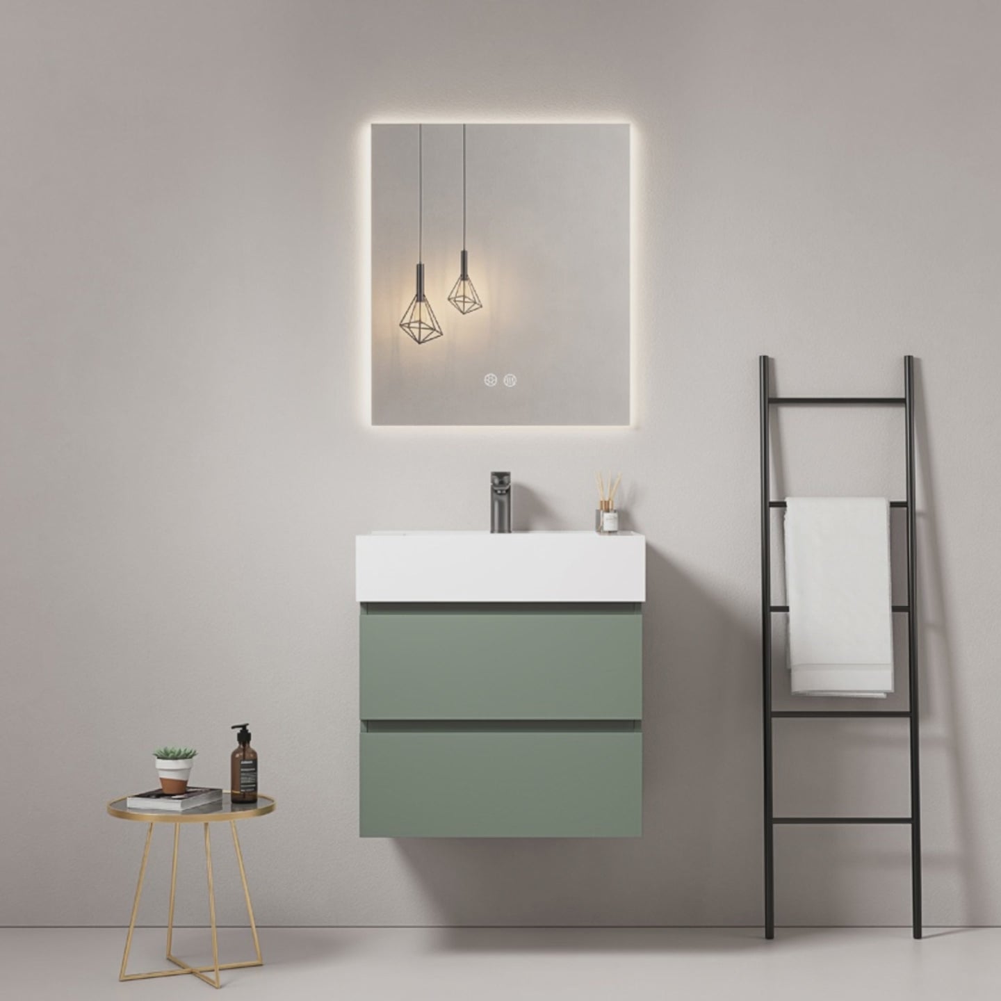 Mobile bagno sospeso 60 cm Verde Salvia Lavabo in Resina Specchio Quadro Retroilluminato - Fiji Paint