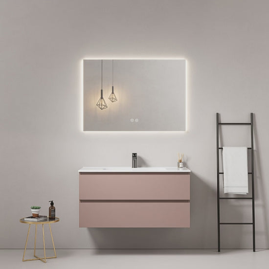 Mobile bagno sospeso 80 cm Rosa Retro Lavabo in Ceramica Specchio Quadro Retroilluminato - Fiji Paint