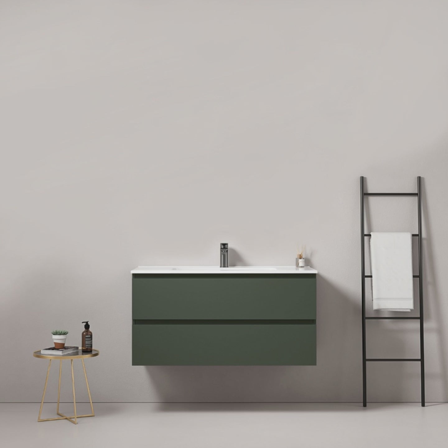 Mobile bagno sospeso 80 cm Verde Comodoro Lavabo in Ceramica Senza Specchio - Fiji Paint