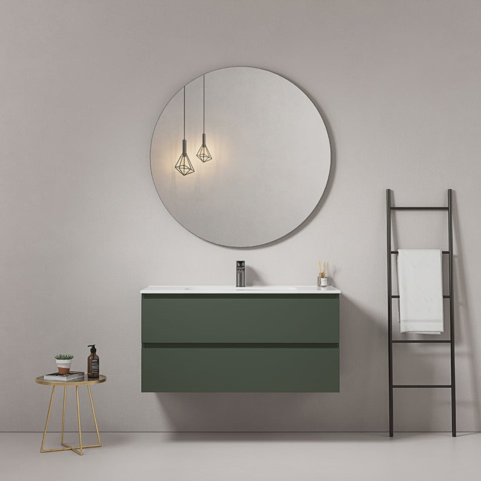 Mobile bagno sospeso 80 cm Verde Comodoro Lavabo in Ceramica Specchio Tondo - Fiji Paint