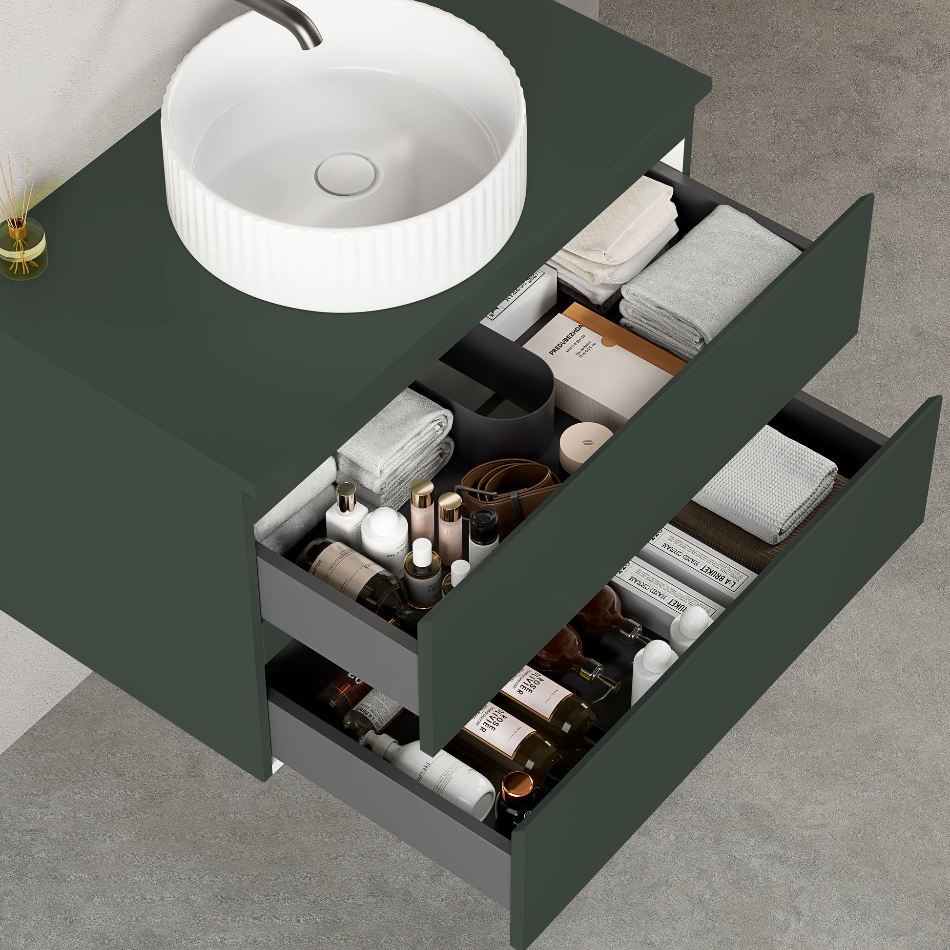 Mobile bagno sospeso 80 cm Verde Comodoro per Lavabo d'appoggio Specchio Tondo Retroilluminato - Fiji Paint Top