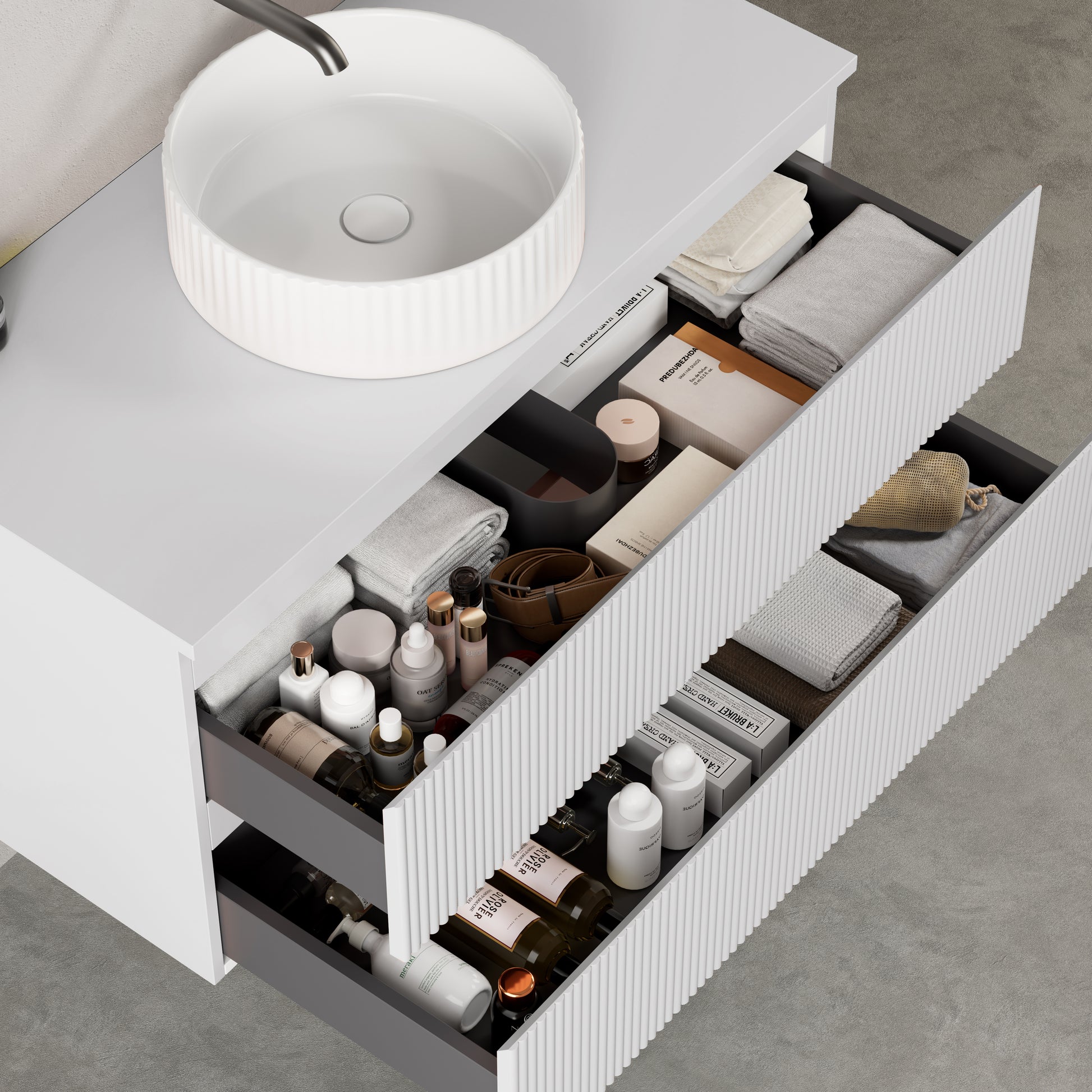 Mobile bagno sospeso cannettato 100 cm Bianco Opaco per Lavabo d'appoggio Senza Specchio - Fiji Paint Top Canneté