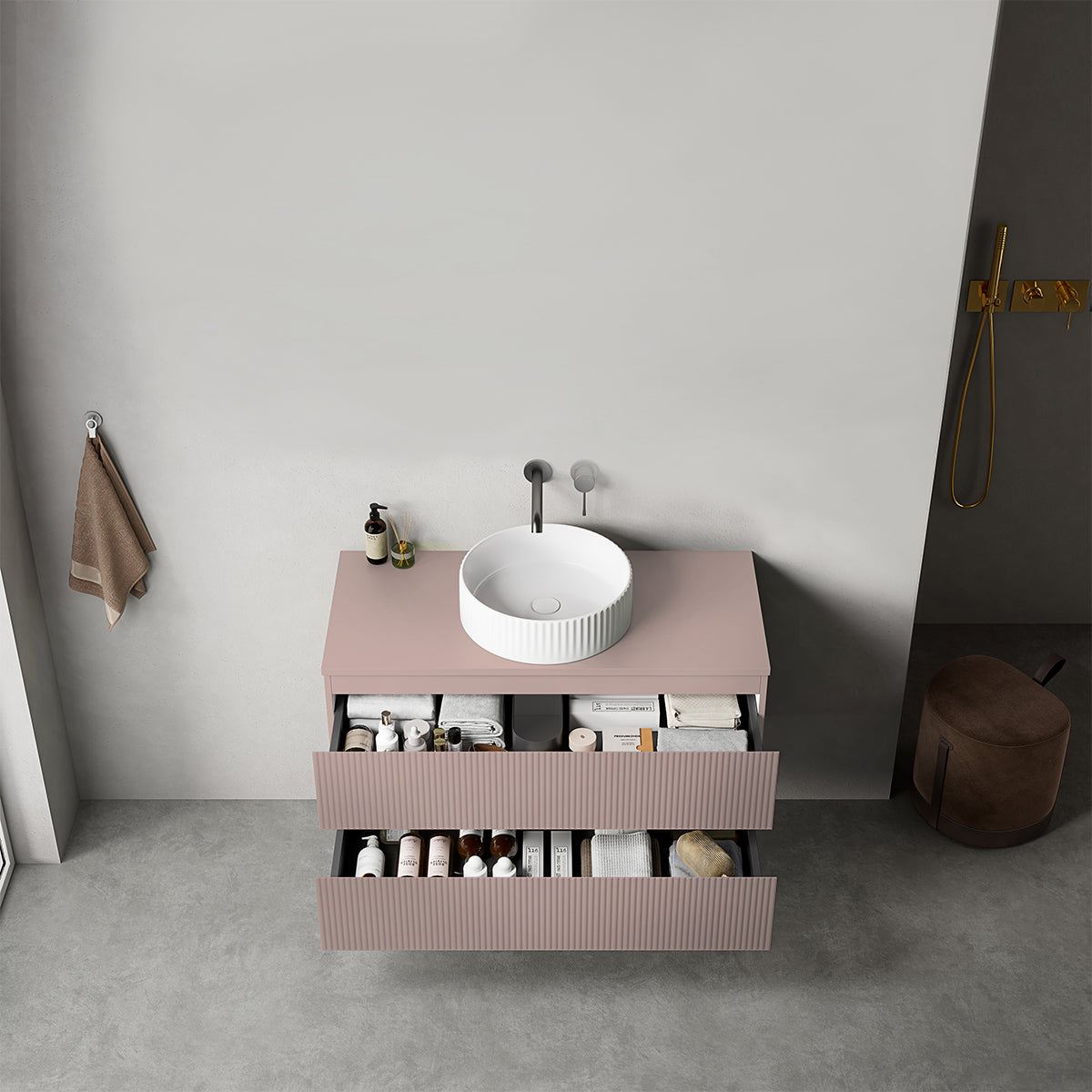 Mobile bagno sospeso cannettato 100 cm Rosa Retrò per Lavabo d'appoggio Senza Specchio - Fiji Paint Top Canneté