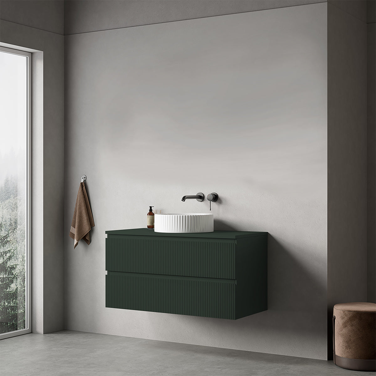 Mobile bagno sospeso cannettato 100 cm Verde Comodoro per Lavabo d'appoggio Senza Specchio - Fiji Paint Top Canneté