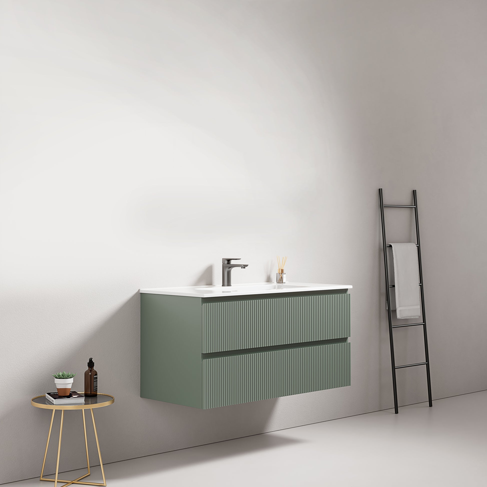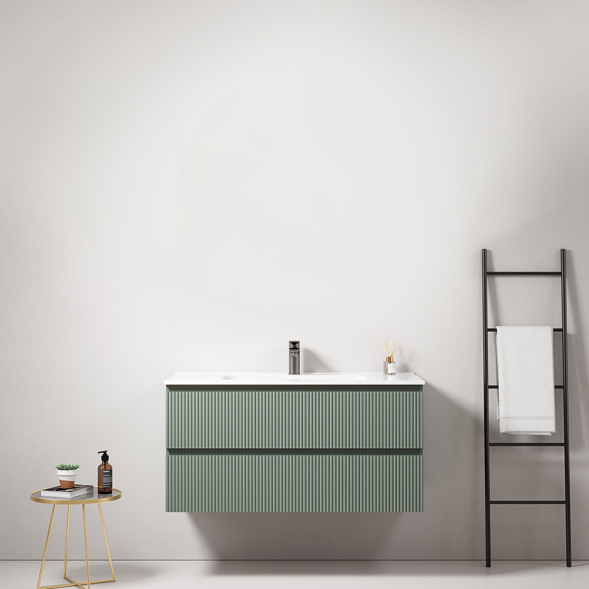 Mobile bagno sospeso cannettato 100 cm Verde Salvia Lavabo in Ceramica Senza Specchio - Fiji Paint