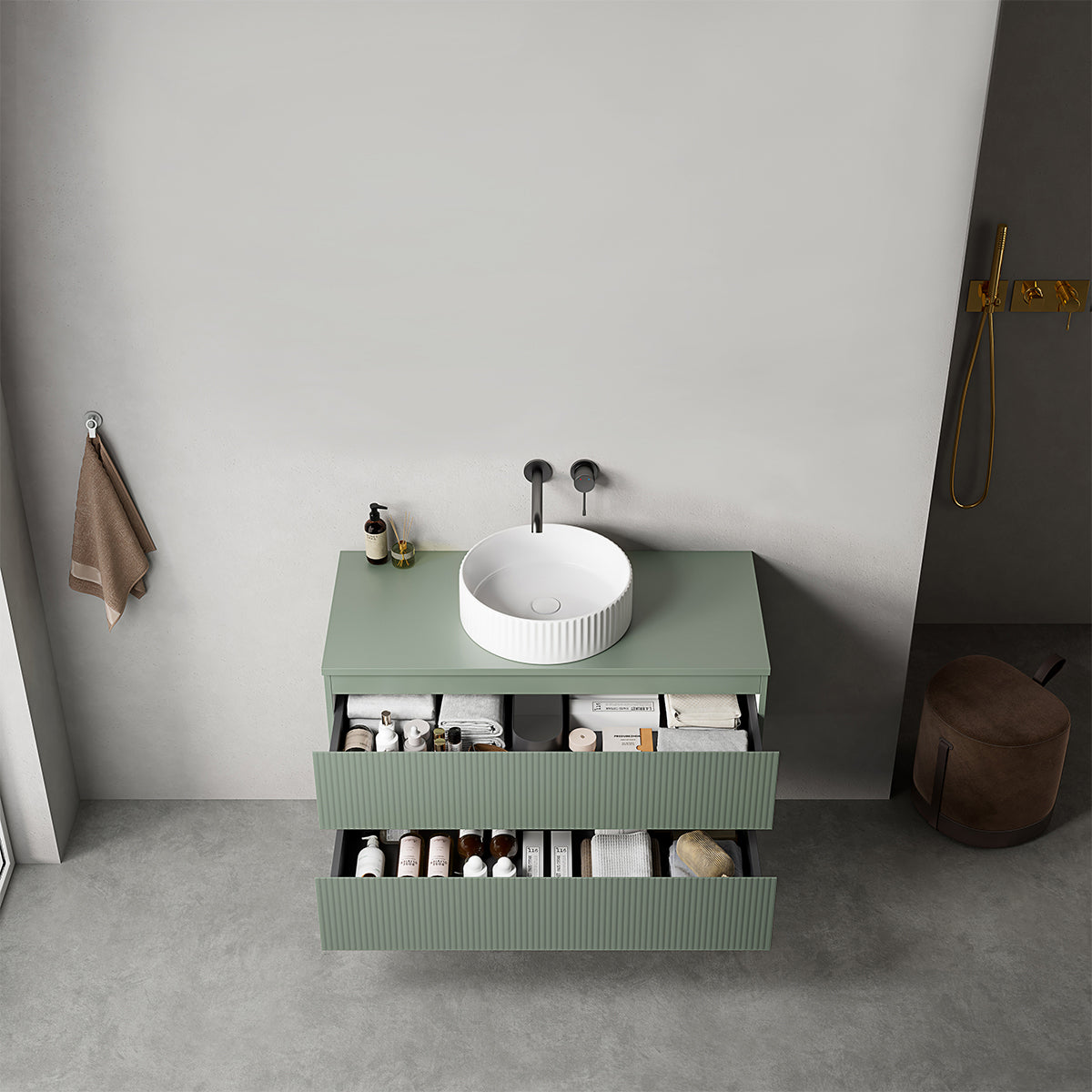 Mobile bagno sospeso cannettato 100 cm Verde Salvia per Lavabo d'appoggio Senza Specchio - Fiji Paint Top Canneté