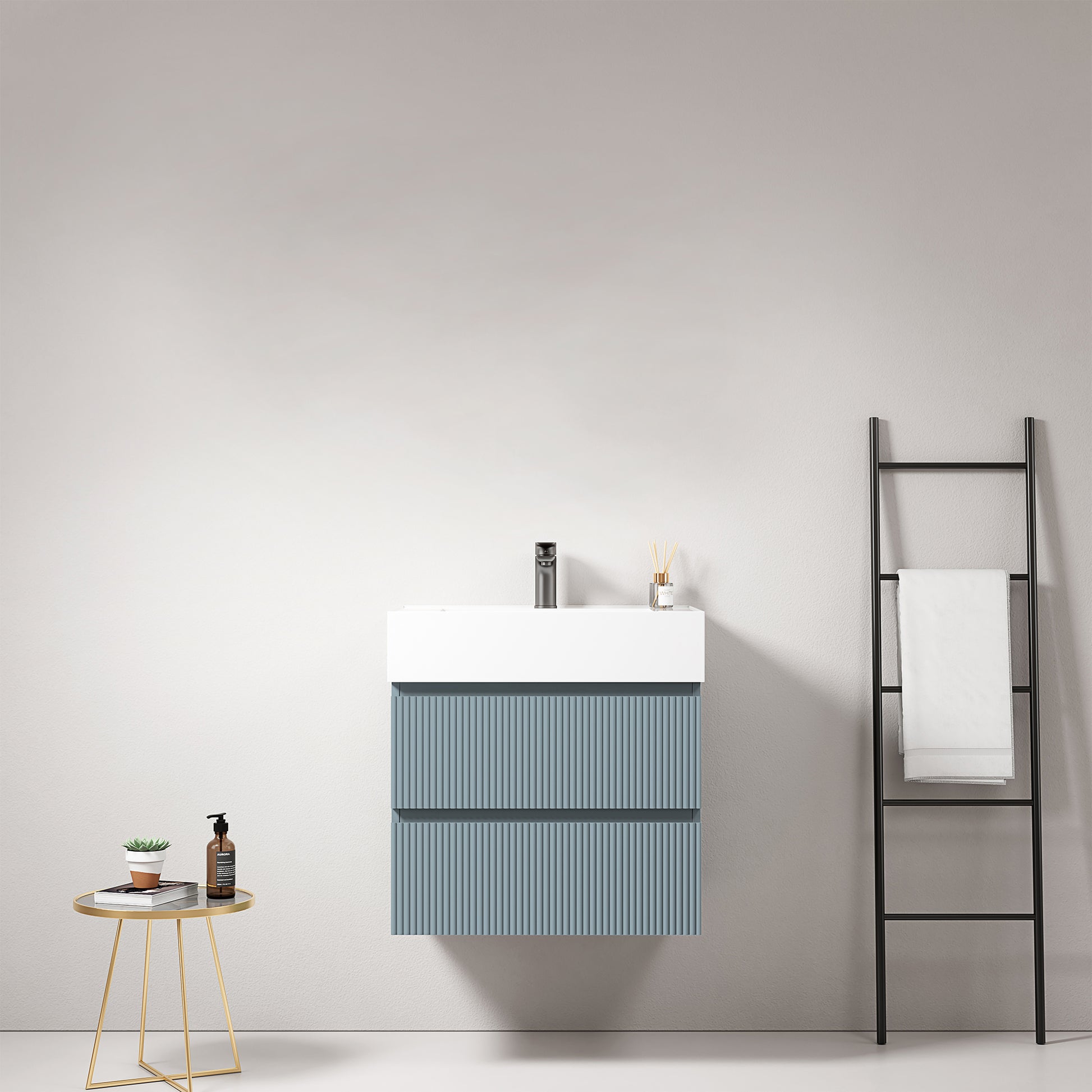 Mobile bagno sospeso cannettato 60 cm Blu Avio Lavabo in Resina Senza Specchio - Fiji Paint