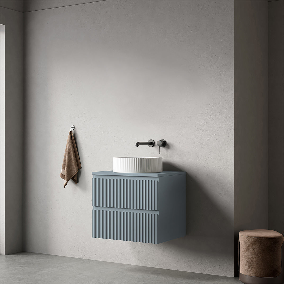 Mobile bagno sospeso cannettato 60 cm Blu Avio per Lavabo d'appoggio Senza Specchio - Fiji Paint Top Canneté