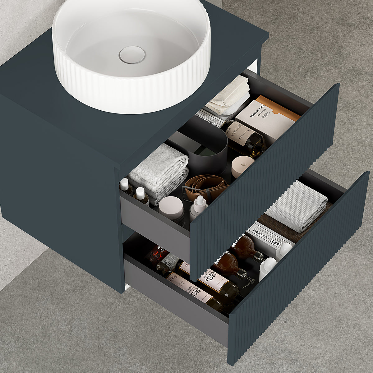Mobile bagno sospeso cannettato 60 cm Blu Mare per Lavabo d'appoggio Specchio Tondo Retroilluminato - Fiji Paint Top Canneté
