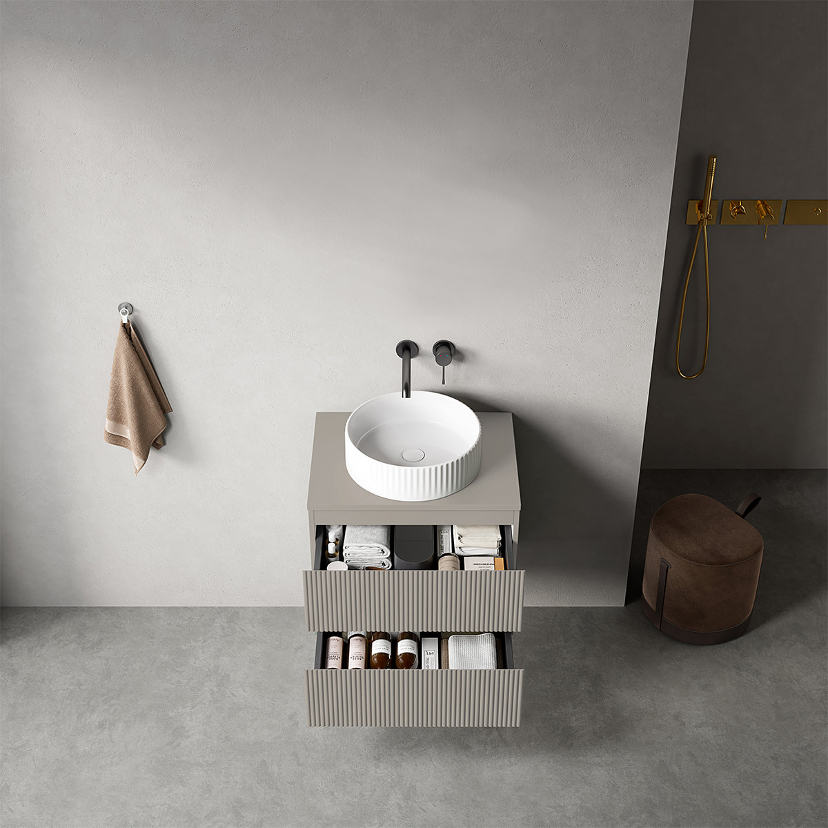 Mobile bagno sospeso cannettato 60 cm Grigio Cenere per Lavabo d'appoggio Senza Specchio - Fiji Paint Top Canneté