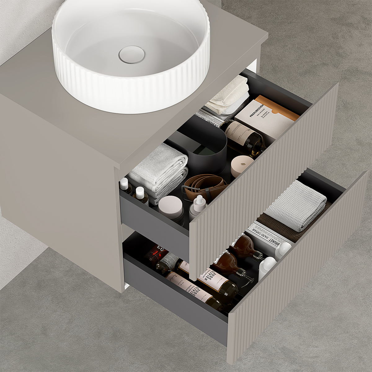 Mobile bagno sospeso cannettato 60 cm Grigio Cenere per Lavabo d'appoggio Specchio Tondo - Fiji Paint Top Canneté