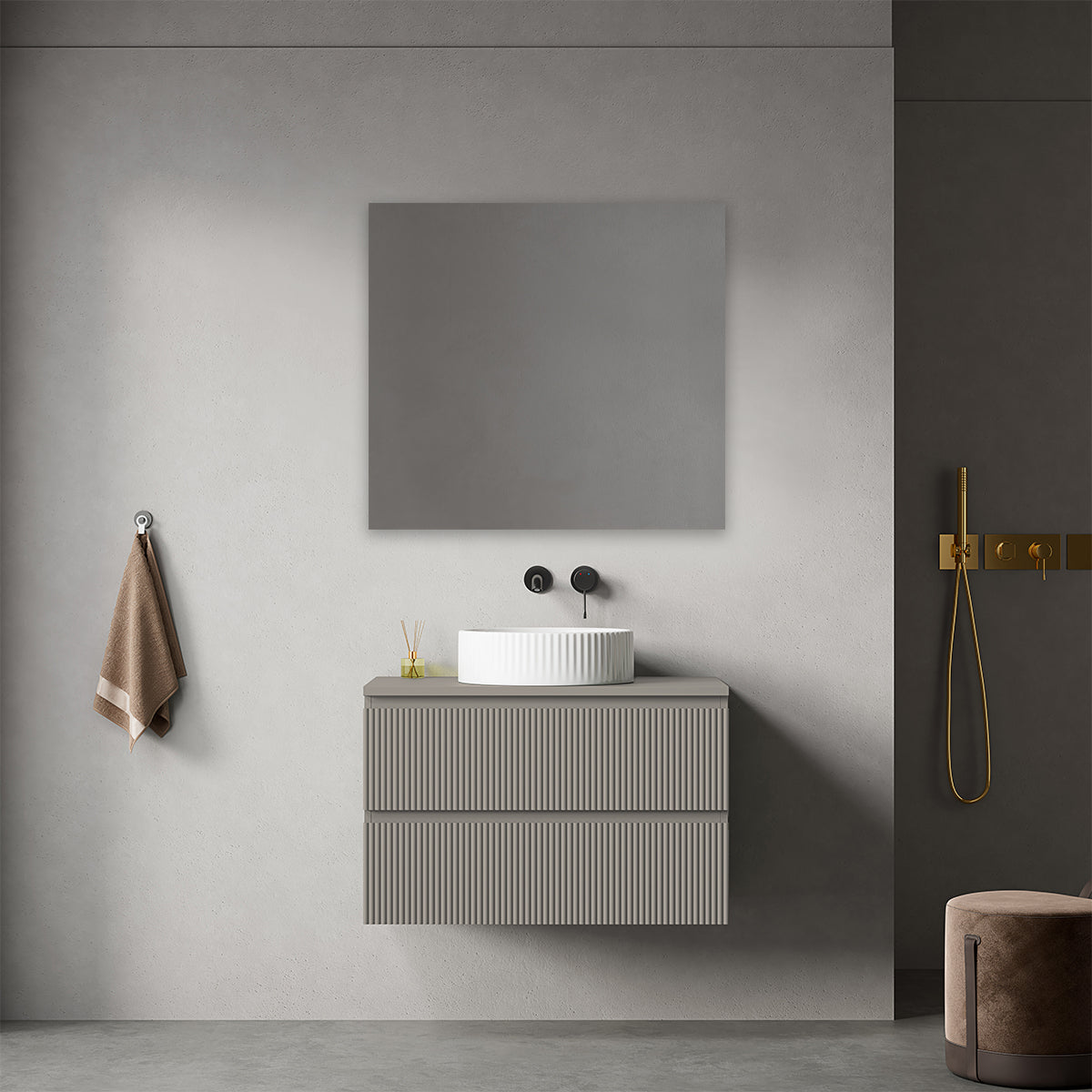 Mobile bagno sospeso cannettato 80 cm Grigio Cenere per Lavabo d'appoggio Specchio Quadro - Fiji Paint Top Canneté