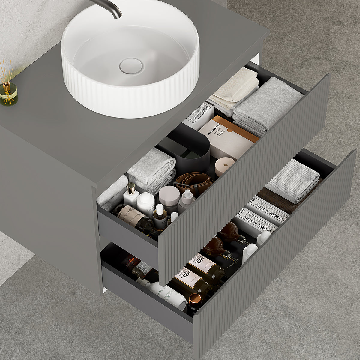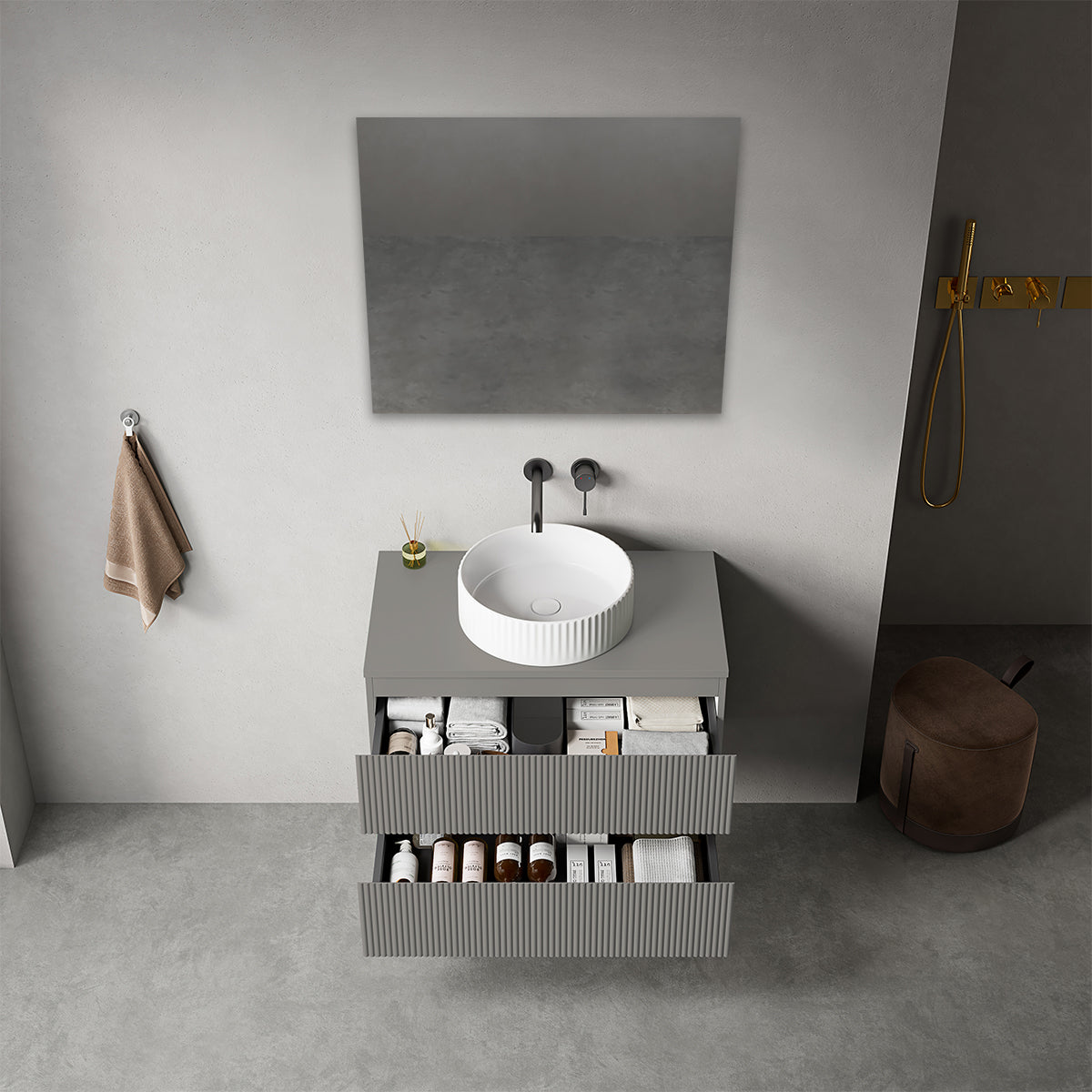 Mobile bagno sospeso cannettato 80 cm Grigio Londra per Lavabo d'appoggio Specchio Quadro - Fiji Paint Top Canneté