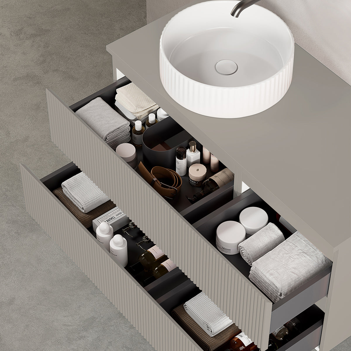 Mobile bagno sospeso cannettato reversibile 100 cm Grigio Cenere per Lavabo d'appoggio Specchio Tondo Retroilluminato - Fiji Paint Top Canneté