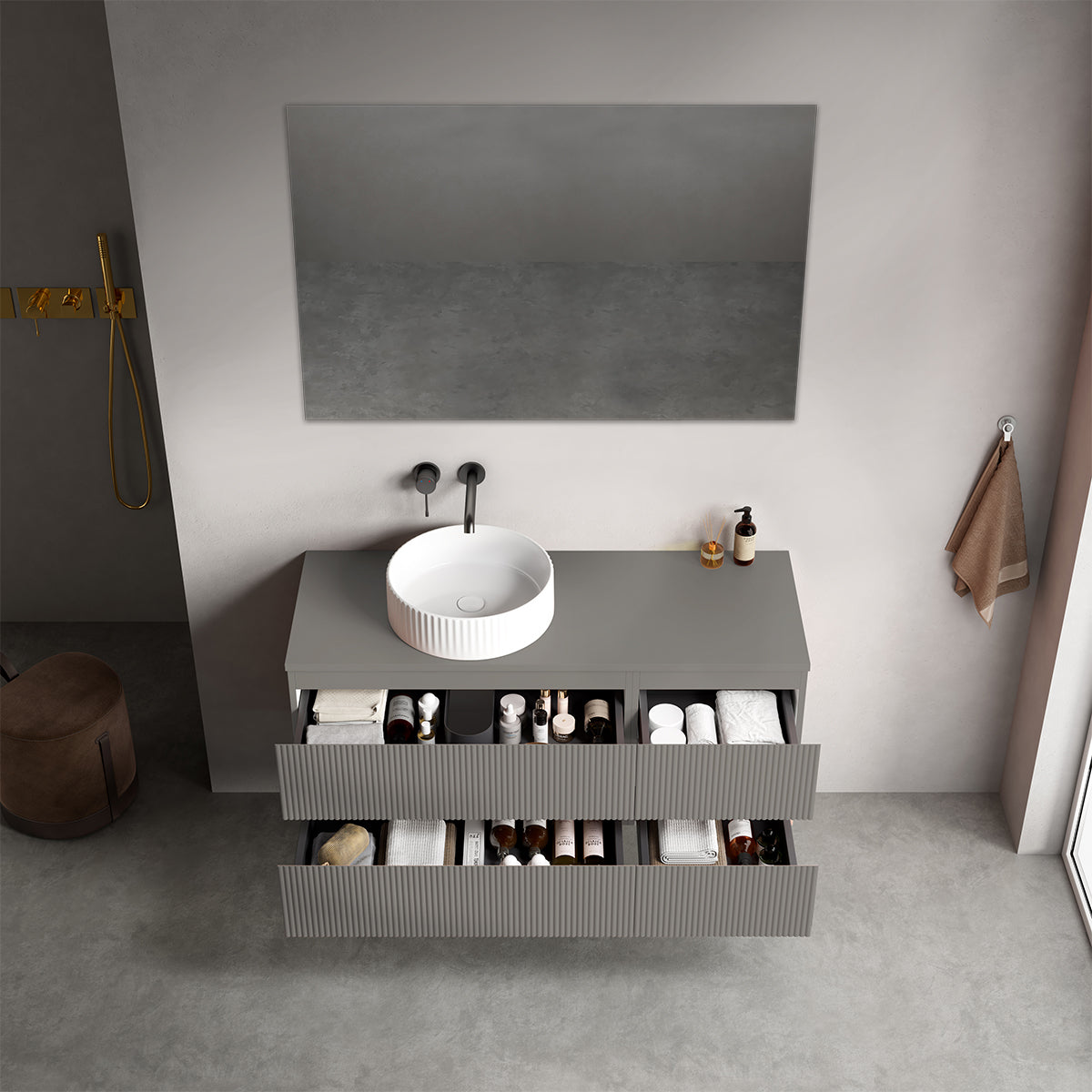 Mobile bagno sospeso cannettato reversibile 120 cm Grigio Londra per Lavabo d'appoggio Specchio Quadro - Fiji Paint Top Canneté