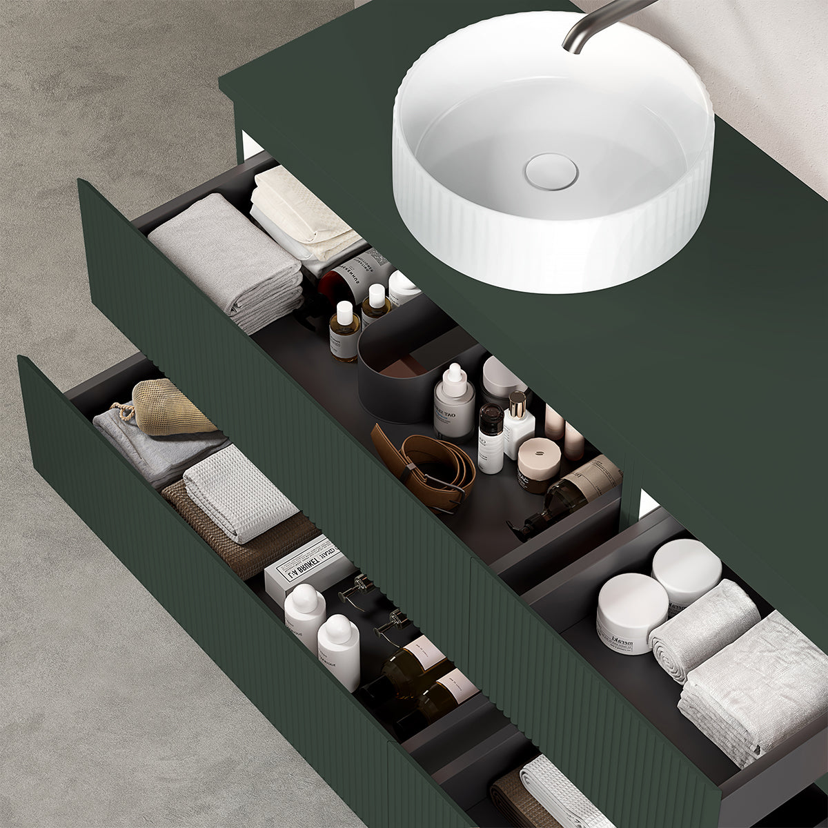 Mobile bagno sospeso cannettato reversibile 120 cm Verde Comodoro per Lavabo d'appoggio Specchio Tondo - Fiji Paint Top Canneté