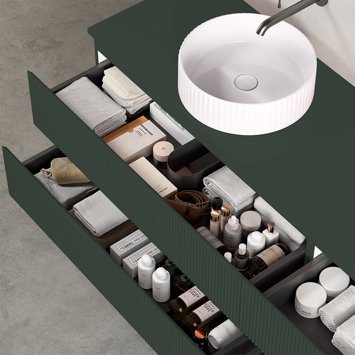 Mobile bagno sospeso cannettato reversibile 140 cm Verde Comodoro per Lavabo d'appoggio Senza Specchio - Fiji Paint Top Canneté